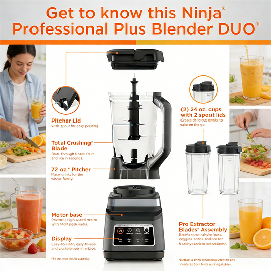 BN751 Professional Plus DUO Blender, 1400 Peak Watts, 3 Auto-IQ Programs for Smoothies