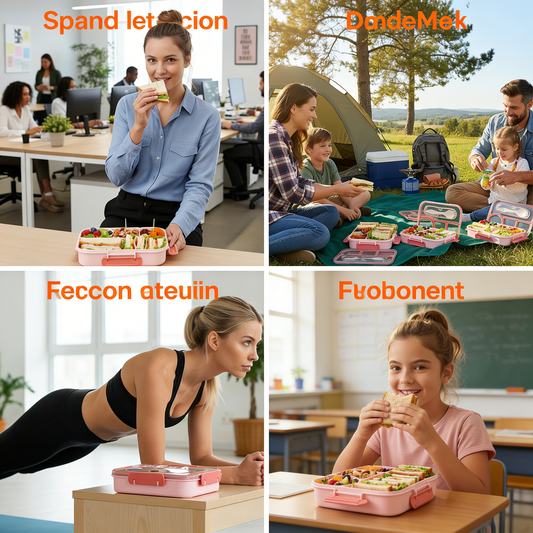 4 Compartments Lunch Box, Snack Containers Reusable Lunch Containers Drop-Proof